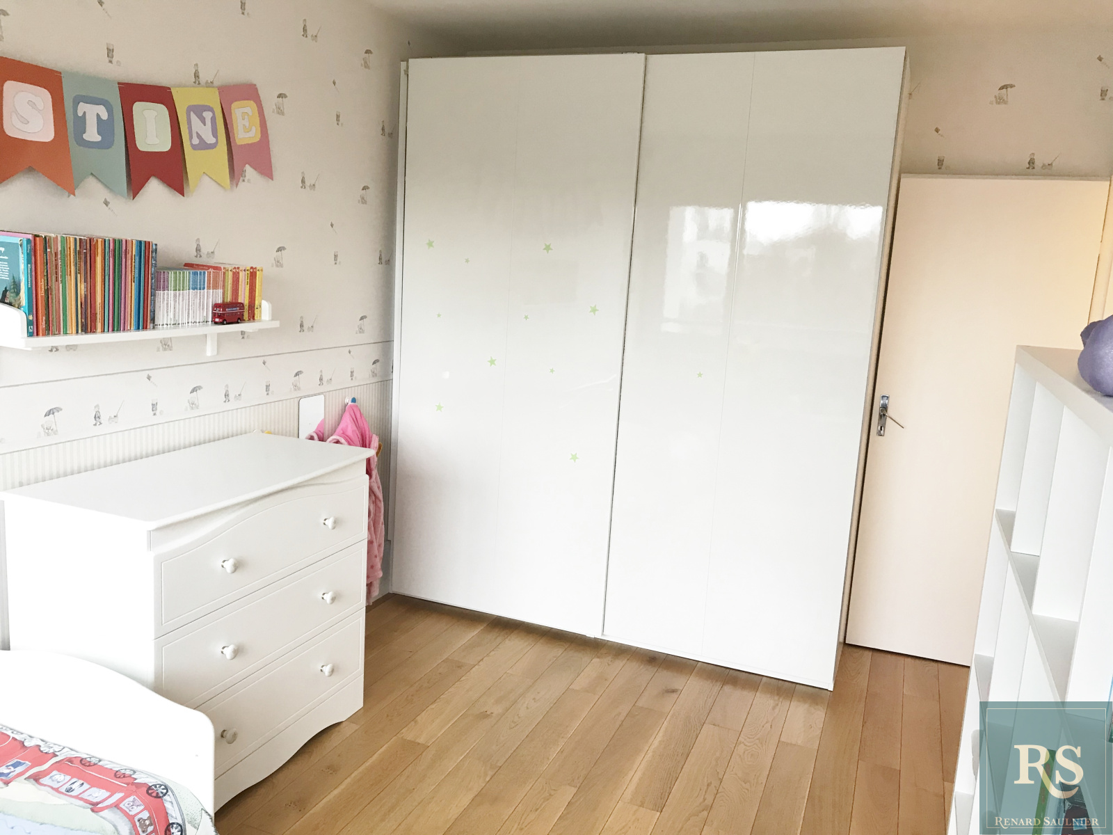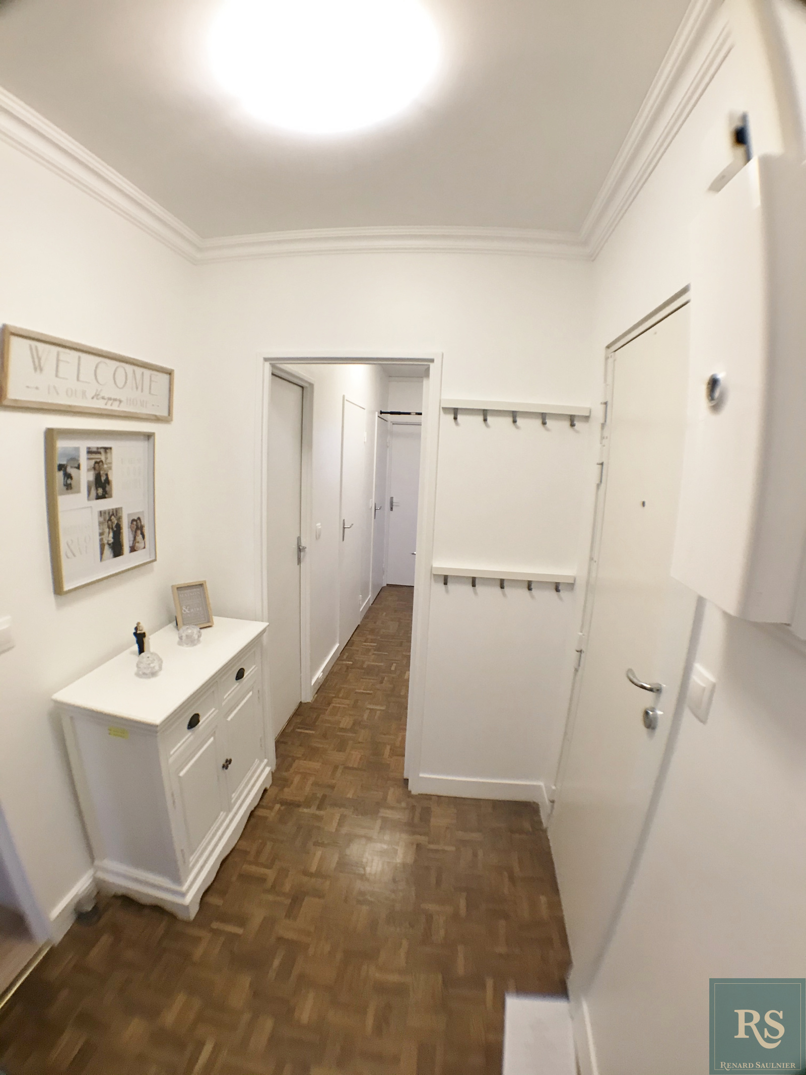 entrée, cuisine équipée (possibilité de créer une cuisine américaine), salle de séjour ouvrant sur balcon, 2 chambres, dressing, couloir avec rangements, salle de bains, toilettes.