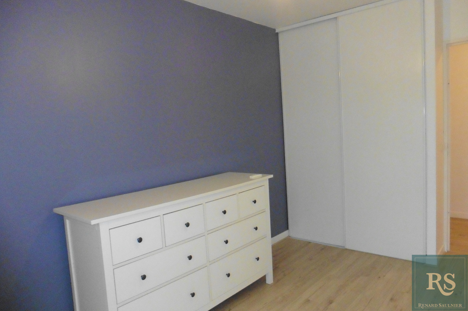 entrée, cuisine ouverte sur séjour donnant sur terrasse, 2 chambres avec placard, salle de bains, toilettes avec lave-mains.