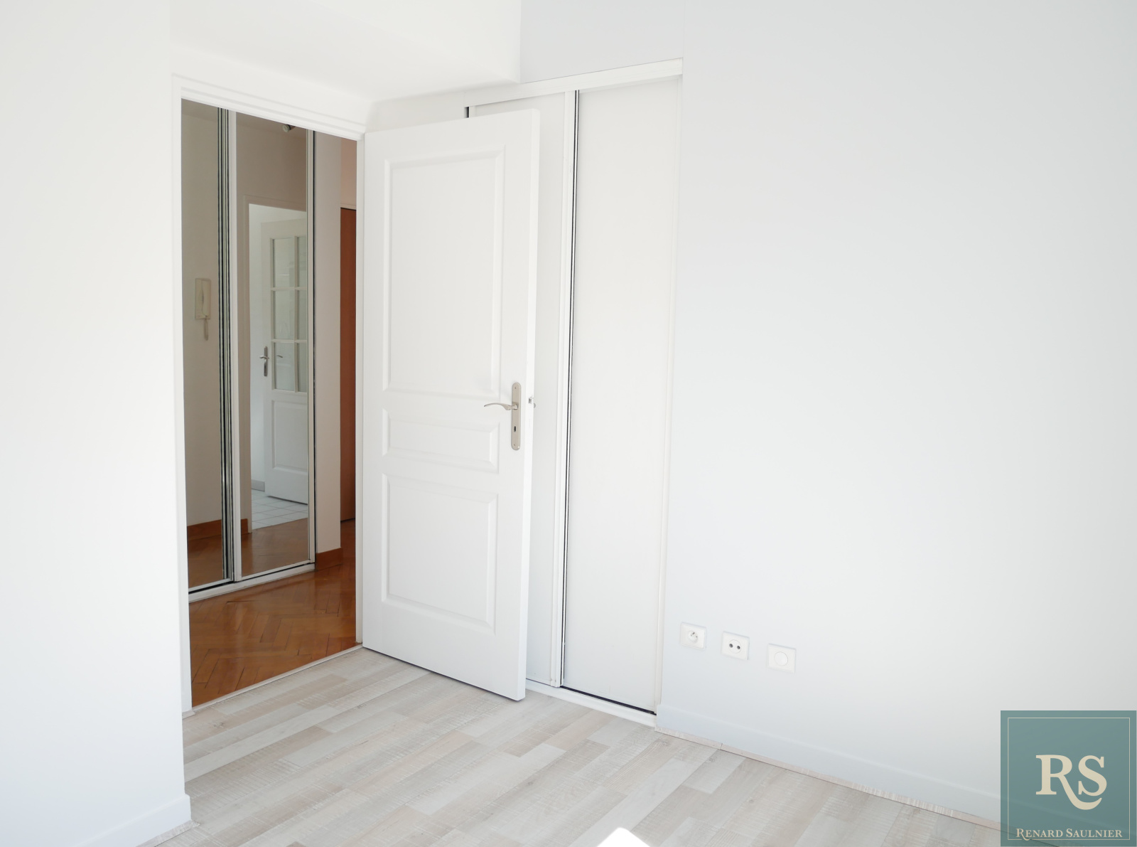 entrée avec placard, cuisine aménagée et équipée, séjour avec bow window, chambre avec placard, salle de bains avec toilettes.