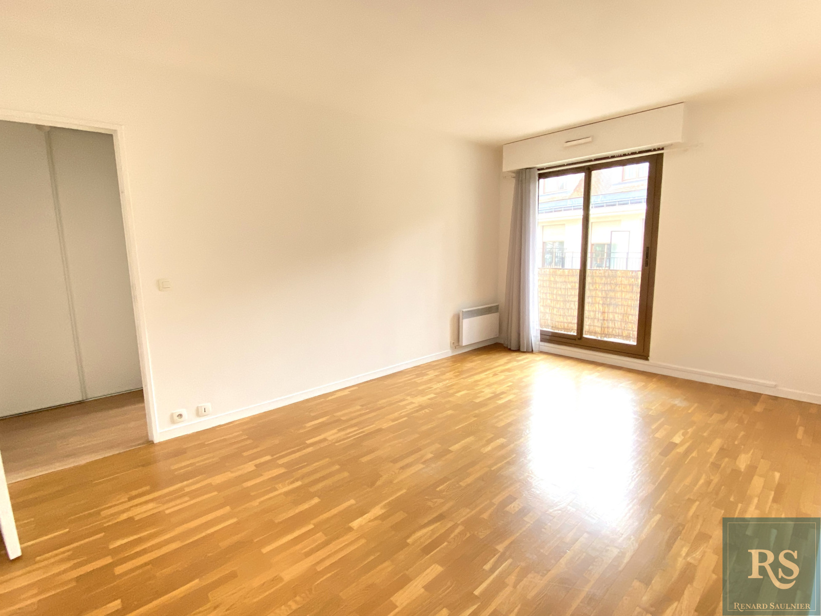 entrée avec placard, cuisine équipée, séjour et chambre donnant sur un balcon, salle de bains, toilettes.